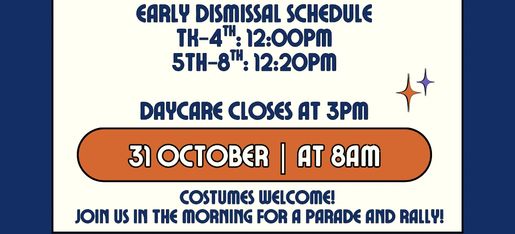 Halloween 10/31 - Early Dismissal Schedule, Daycare until 3pm